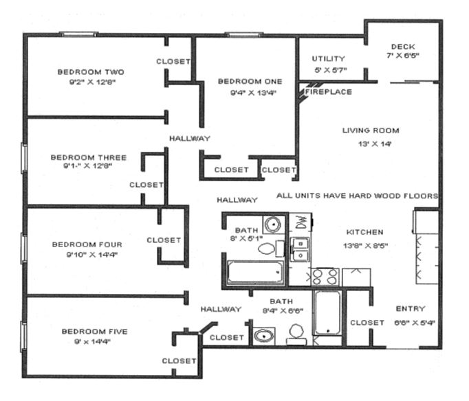 4 And 5 Bedroom Apartments / 2 Baths